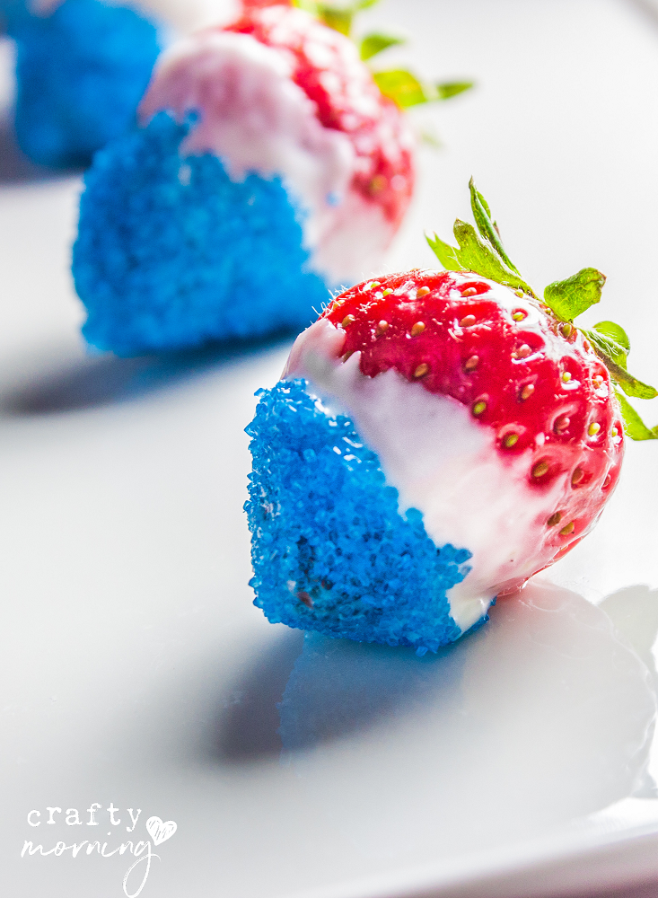 If you’re having a 4th of July or Memorial Day party, consider making these adorable red, white and blue strawberries! Not only are they a healthier option than most desserts, but they are surely a crowd pleaser. IÂ brought these to a party and EVERYONE just loved them!