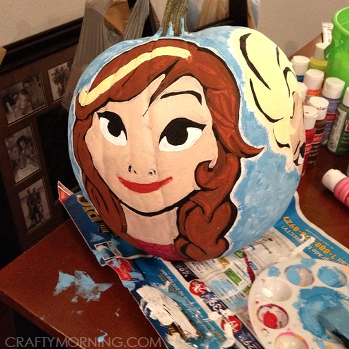 Here’s a fun painted Frozen olaf pumpkin idea! Made by Espi