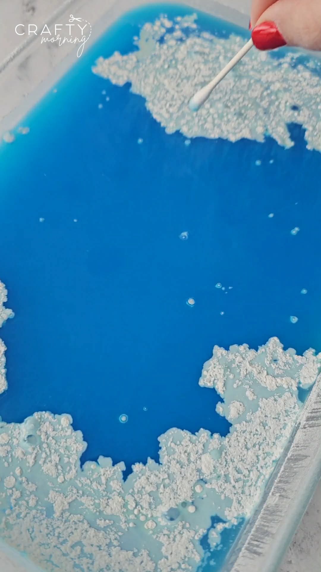 - Dip the q-tip into the soap then press into the baby powder. It will "crack" one or two times.