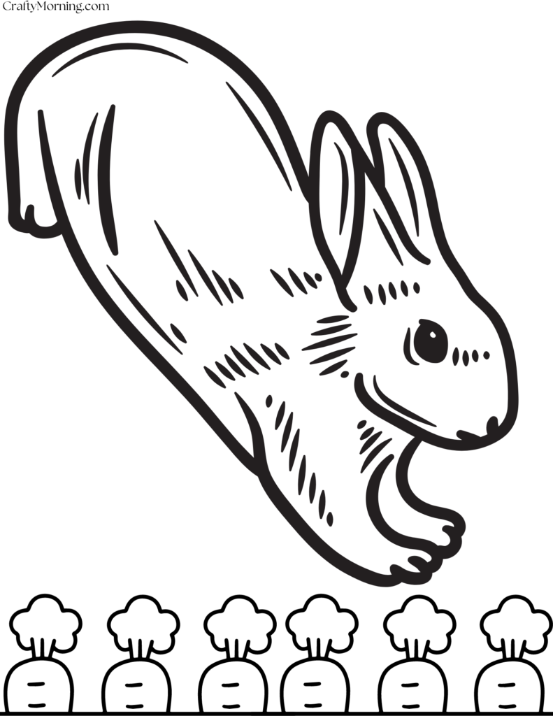 This coloring sheet has a curious realistic rabbit drawing and some carrots to color.
