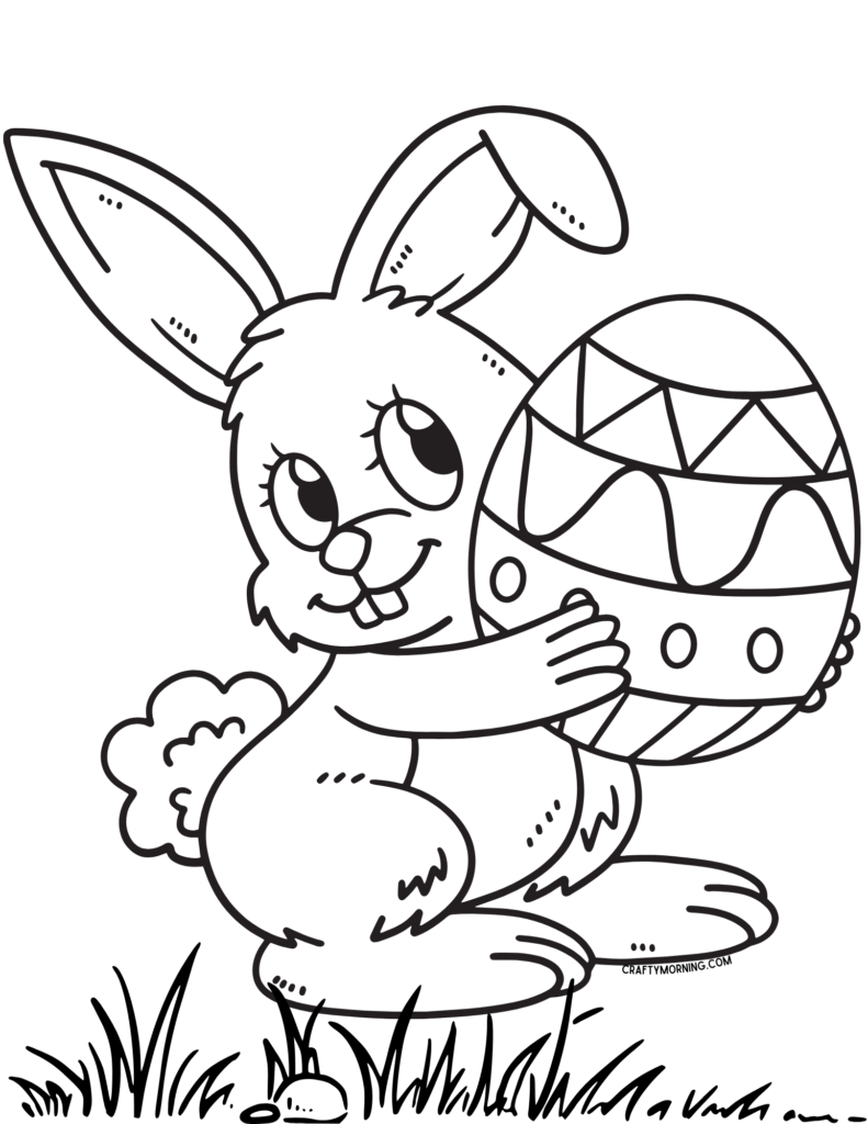 Here’s an Easter bunny coloring sheet to print with a bunny holding a decorated egg.
