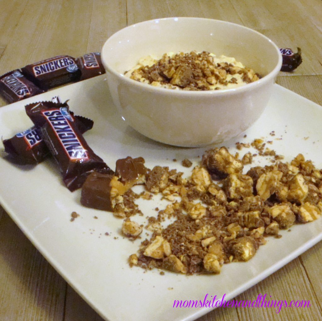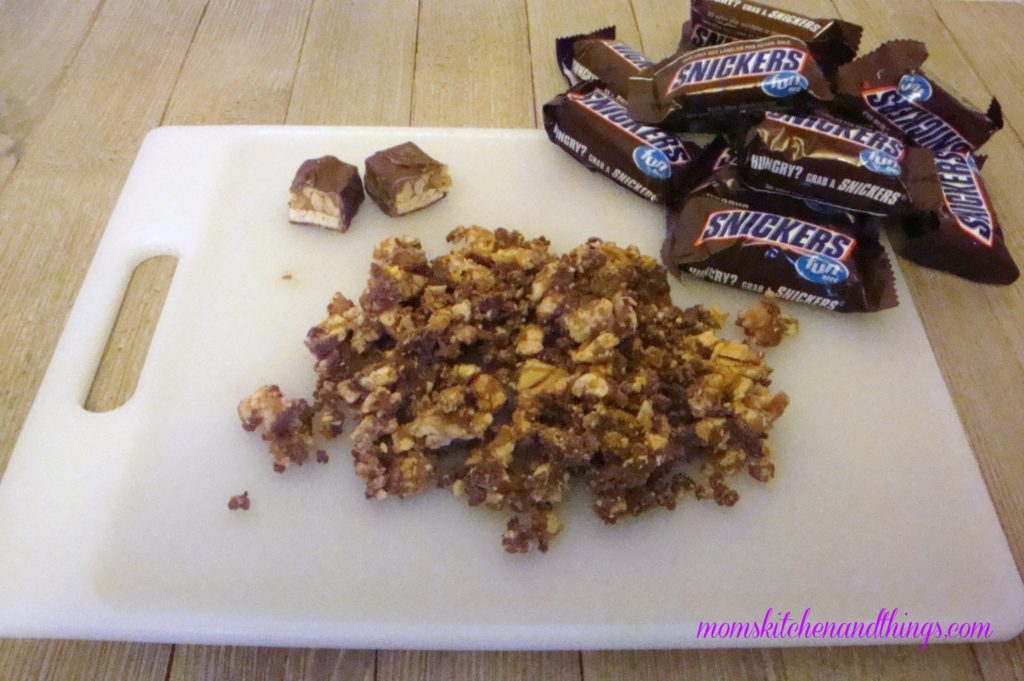 3) Unwrap and chop the snickers into small pieces. (I also used my ninja for this)
