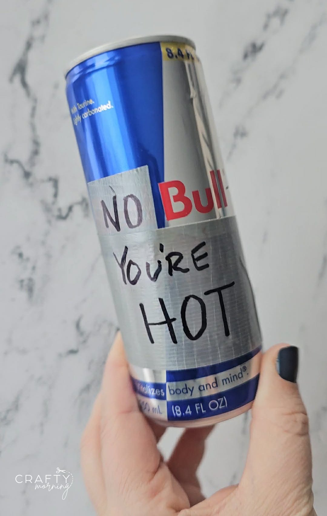 If they like Redbull energy drinks better, just cover up the “red” part with duct tape and write “No–bull you’re hot” or “you’re my type!”