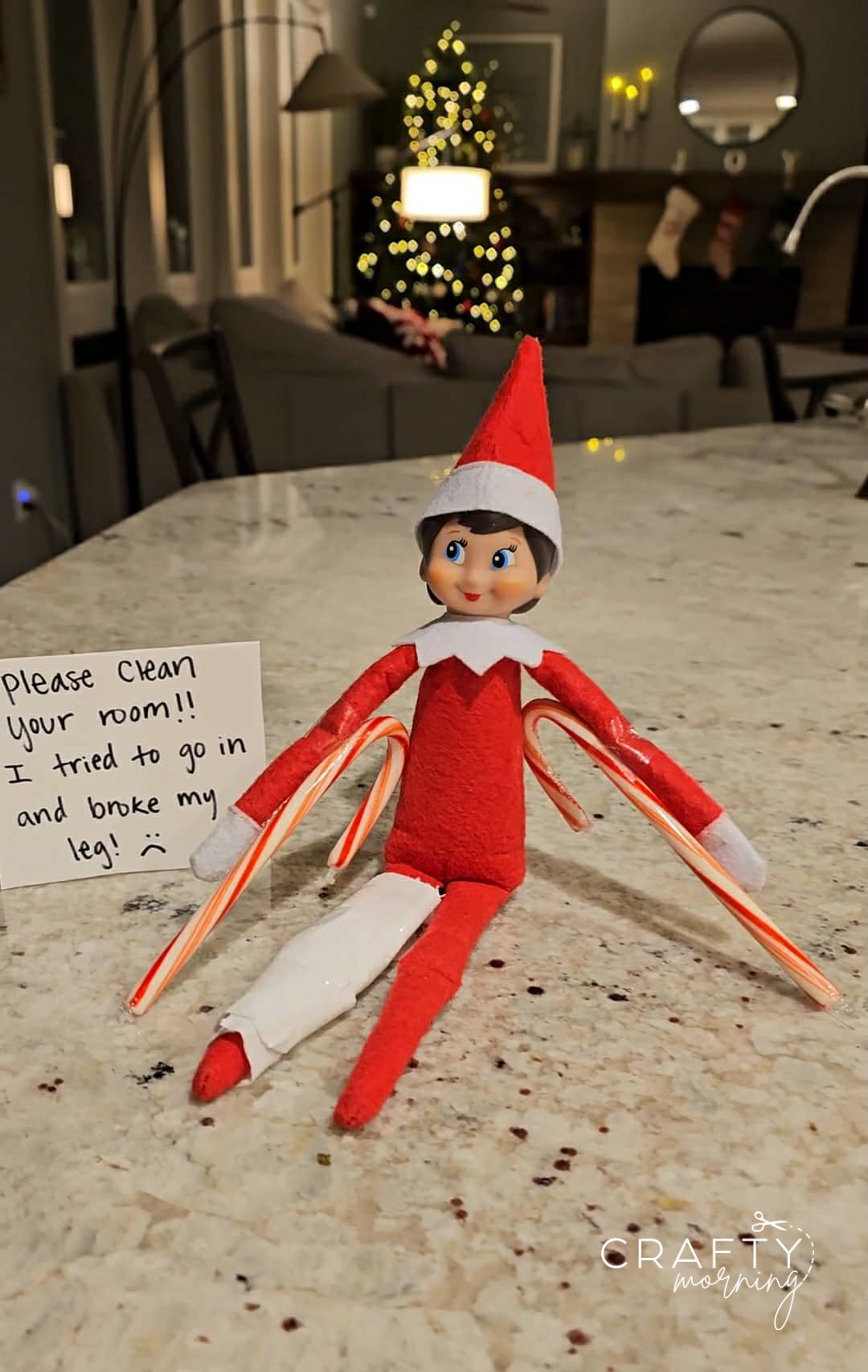 Elf Broke her Leg and Needed Candy Cane Crutches