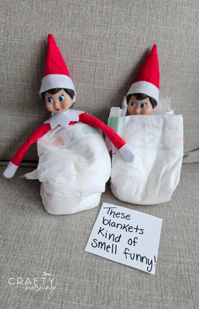 Elf thinks these blankets smell funny…diapers!