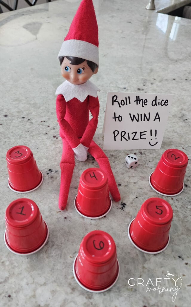 Elf Plays Roll the Dice Game to Win a Prize!