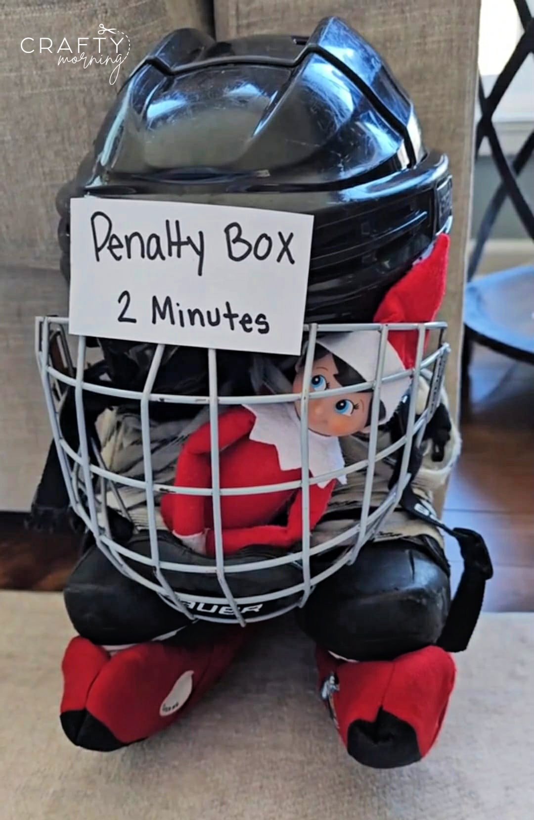 Elf got put in the penalty box for Hockey