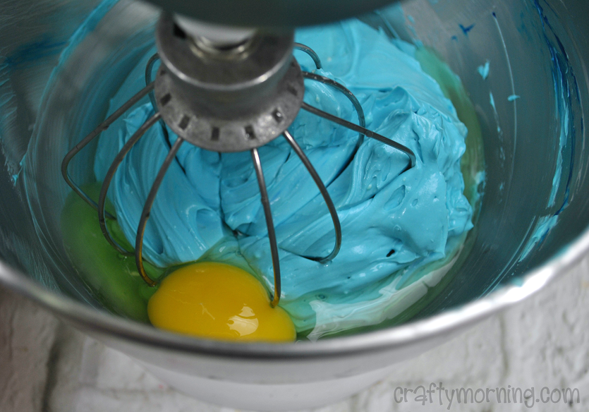 Mix on medium speed until the ingredients have combined and the mix is smooth. Continue to add more blue coloring until you have the blue Cookie Monster color.