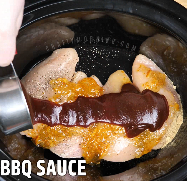 - Add 4 chicken breasts to the bottom of the crockpot.
