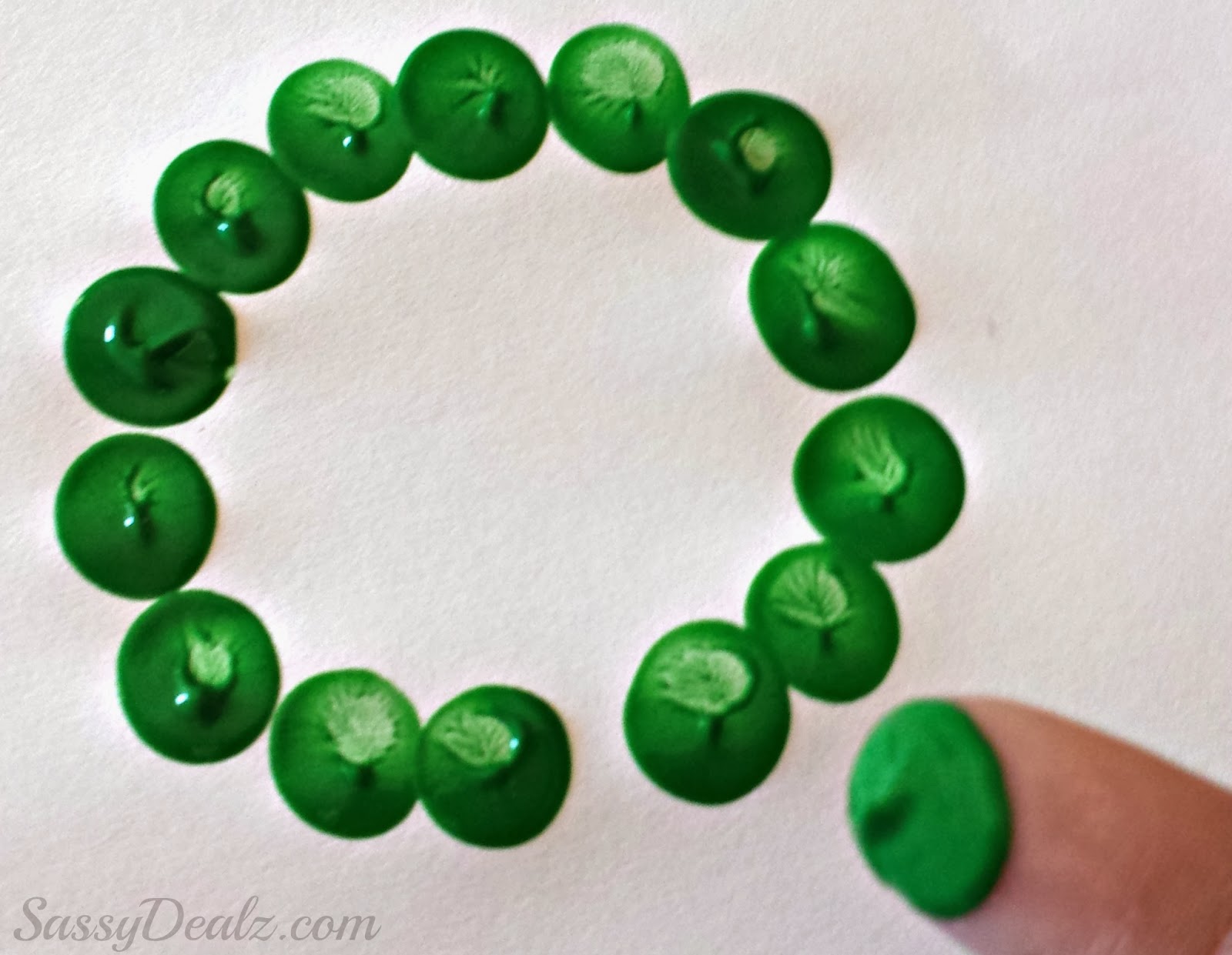 Dip your child’s pointer finger in green paint and make a circle leaving an opening at the bottom.