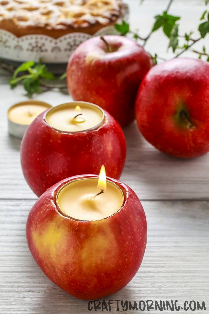 If you’re looking for a beautiful fall centerpiece, make these cute apple candles! Just use a drill paddle bit or just a knife and carve out a circle. Place the tea light inside and light it!