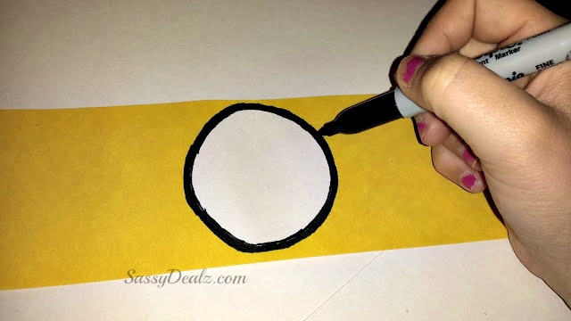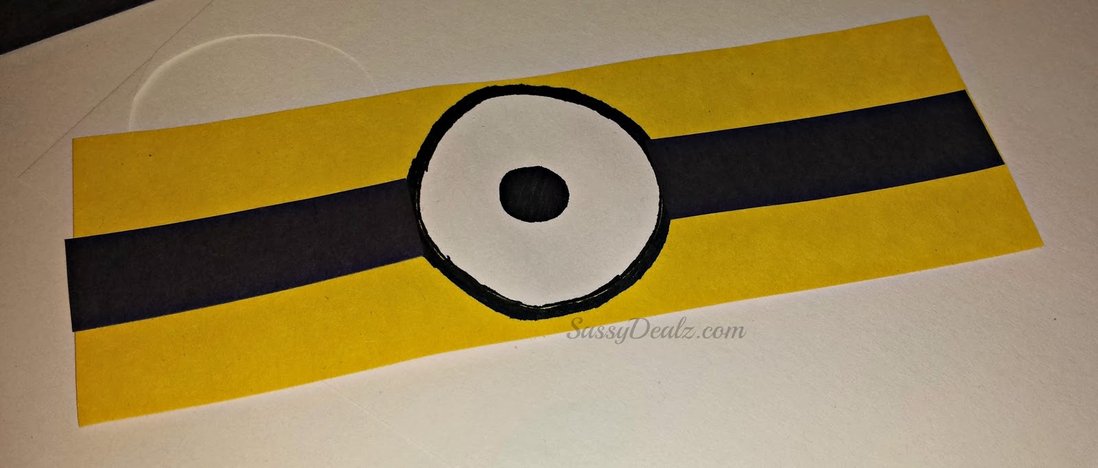 Cut the yellow paper however wide you want the minions face to be. Cut out a white circle and trace it with a black marker/sharpie.