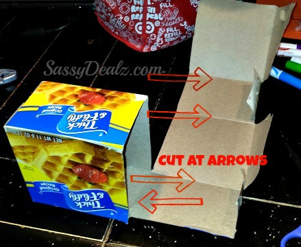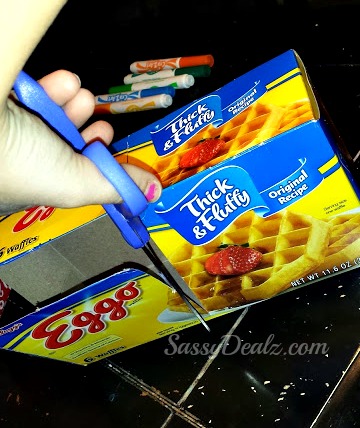 First you will need an empty waffle box, we had the thick and fluffy kind (SO good by the way!)