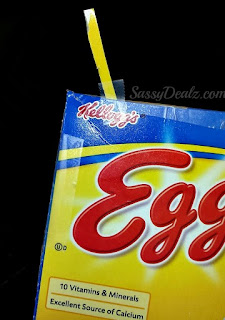 You will have extra cardboard pieces that have the Kelloggs logo on it, you can cut it into a little flag! Then attach it to the flag pole with tape.