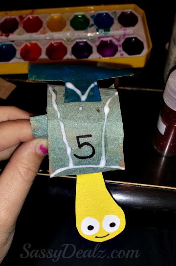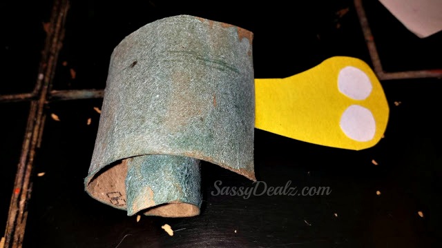 Roll the toilet paper roll in a spiral, cut out a orange/yellow Turbo head and glue them together. We also painted his body blue with watercolors (didn’t turn out the greatest, I would use a different paint next time!) Then cut/glue two white circles out of paper to make his eyes.