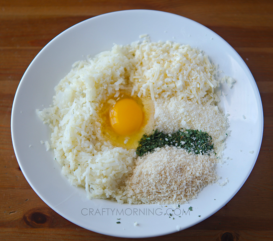 - Shape into little tater tops using a tablespoon full or so, and either place in oil or on a baking sheet.