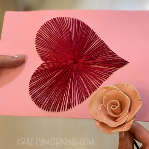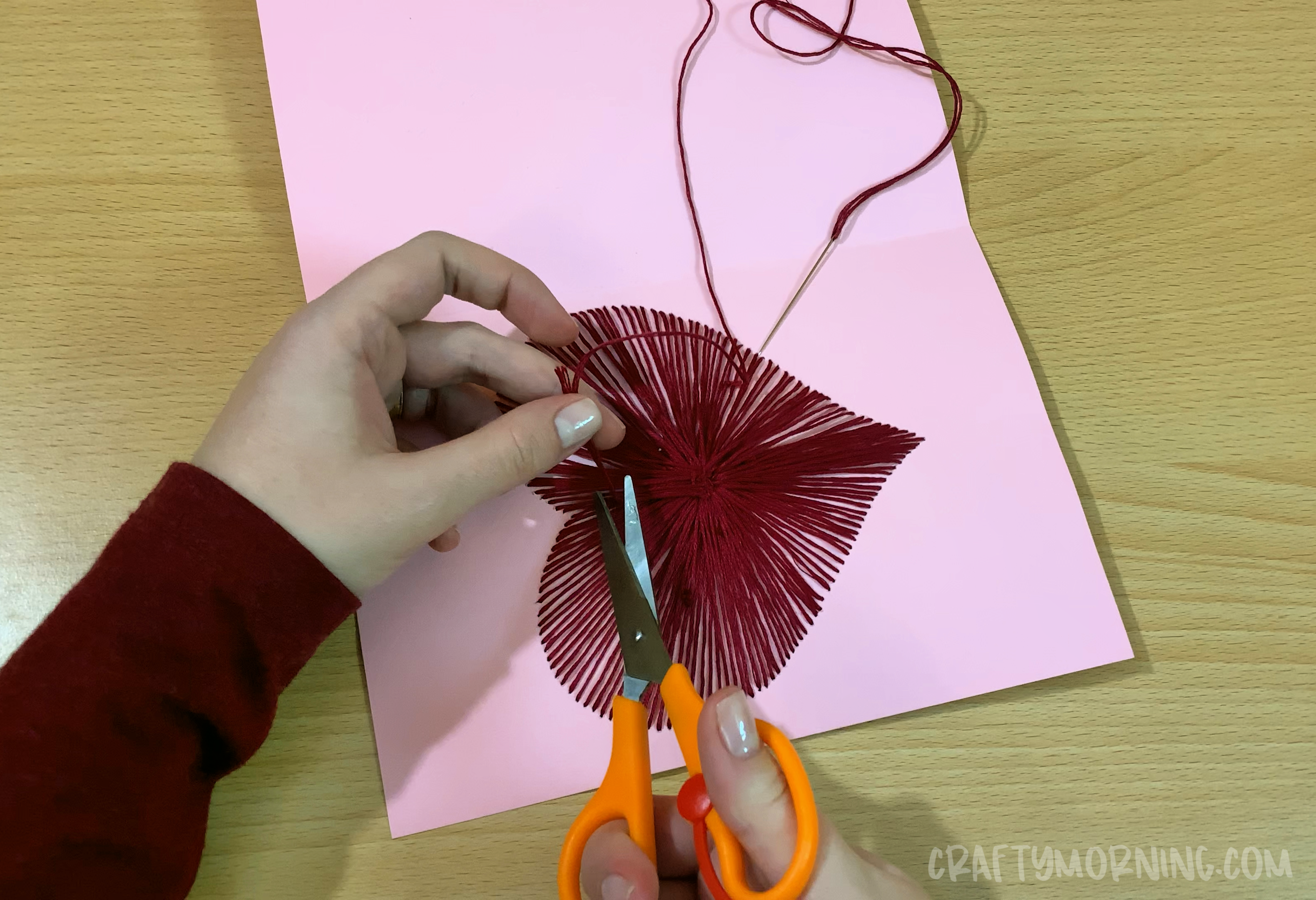 - Using a needle, poke holes all around the line of the heart. Poke a hole in the middle then thread it to the tip of the heart back and forth 3 times then secure with a piece of small tape.