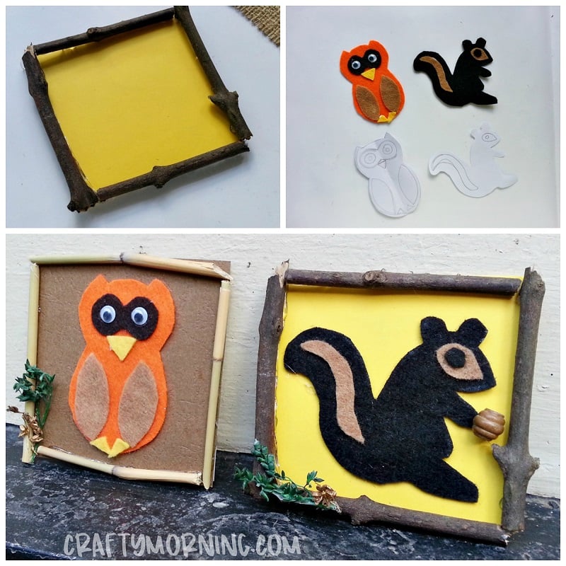 Step-7: Now simply glue the owl and squirrel on frames. You can add more details to the frame. I glued some dry leaves on the sides.