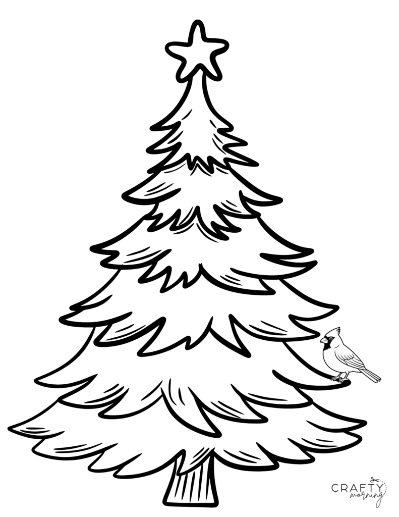 This Christmas tree coloring page has a pretty cardinal sitting on a branch to color. It reminds me of my grandma who passed!