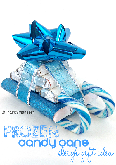 Disney Frozen is all the rage this year and I found an awesome candy sleigh tutorial from Tracey! You can find her on YouTube, Facebook, and Instagram for more ideas. She used blue candy canes which is genius to tie this whole Christmas gift together! I think they would be great for student or teacher gifts.