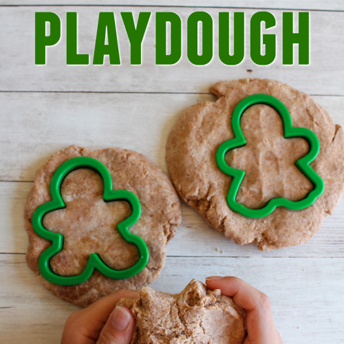 Make some fun gingerbread scented playdough for the kids! Use gingerbread cookie cutters to make cute little guys!