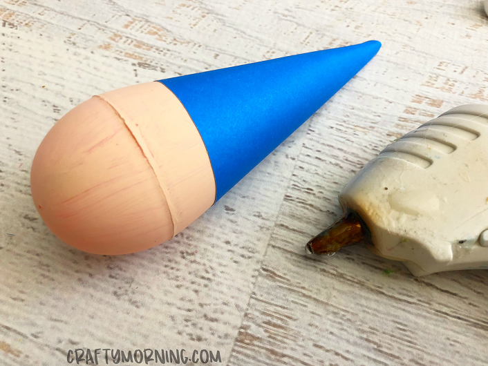 3. Place the two bottom corners together and secure with glue to make a hat, along with the back of the hat.