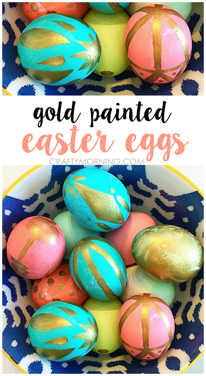 Here’s another fabulous Easter egg decorating idea from Tamara on Instagram ~ gold painted eggs! All you need to do is dye your eggs like normal then after they are dry, take gold acrylic paint and make fun designs! I love the blue egg with the star shape on the top…so fun!