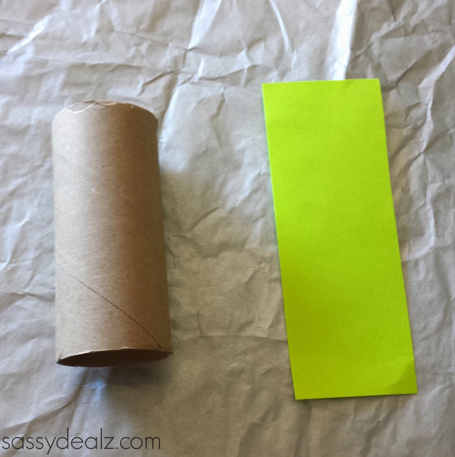 Next you will need a recycled toilet paper roll and a thin piece of green paper. All I had was this neon green but it worked!