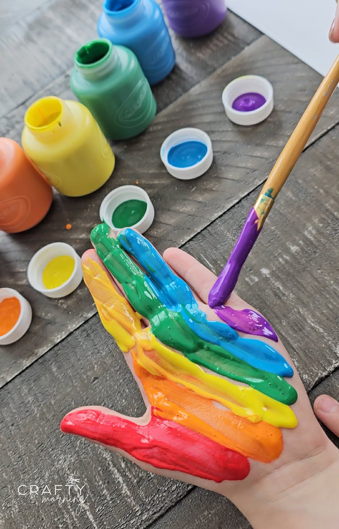 Have the kiddos make rainbow handprints on a shamrock pot for St. Patrick’s Day! I think it’d be cute if they painted gold coins with their fingerprints too! If you want the printable just save the image below and print in portrait mode.