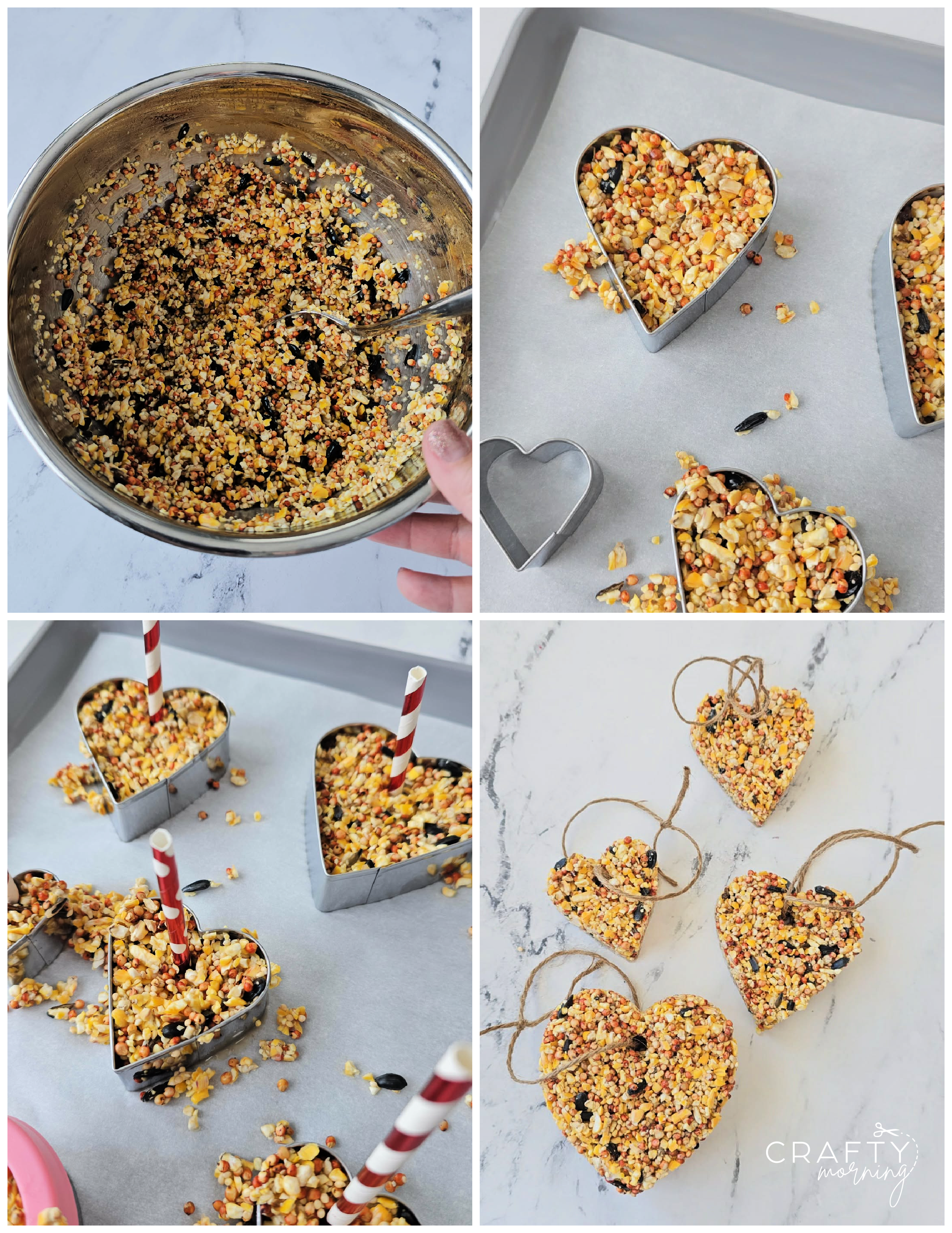 Make some pretty little heart birdfeeders for your birds this Valentine’s! It’s so easy and the kids love watching which birds come to eat! Make sure to also try our birdseed bundt pan wreath idea and mini donuts for the birds too!