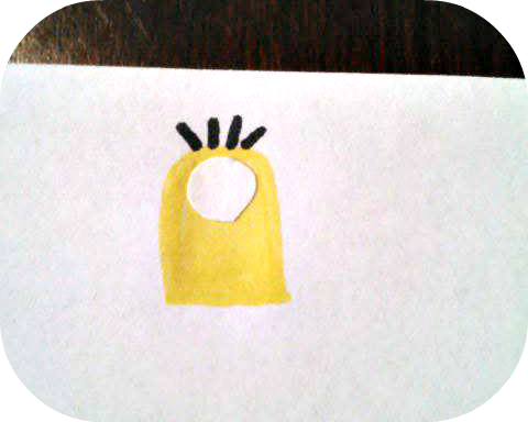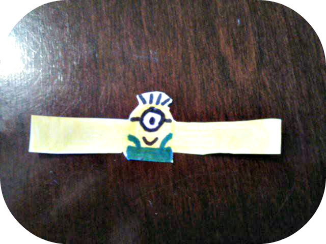Then you color two yellow rectangles coming out from where the minion’s arms should be. This is going to be where it wraps around the finger. I did mine extra long in case it was too short.