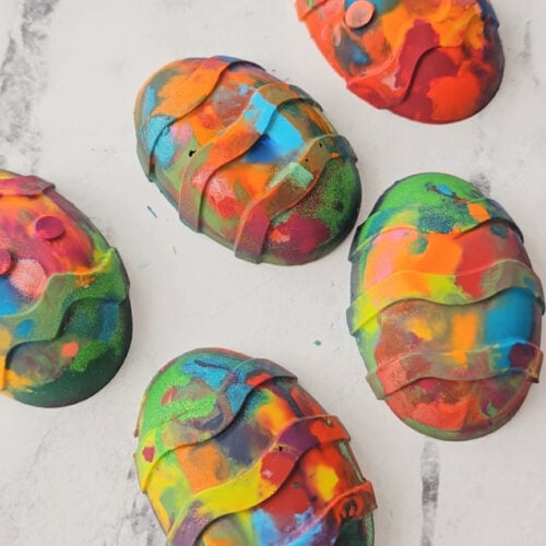 Make some fun Easter eggs out of broken crayons! I bought these silicone Easter egg molds on Amazon.