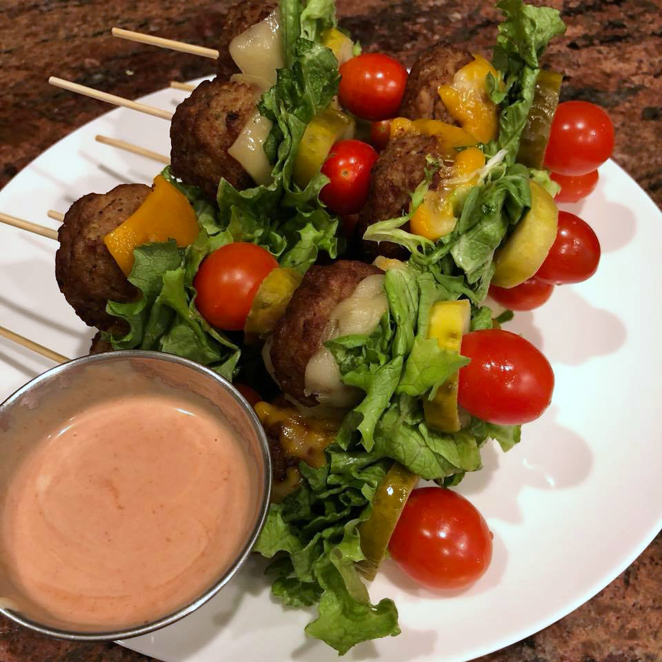 These delicious cheeseburgers on a stick was thought of by Vanessa Hipol-Kincaid! You can follow her on Instagram here for more recipes. If you’re on the ketogenic diet or a low carb diet these are the perfect dinner!