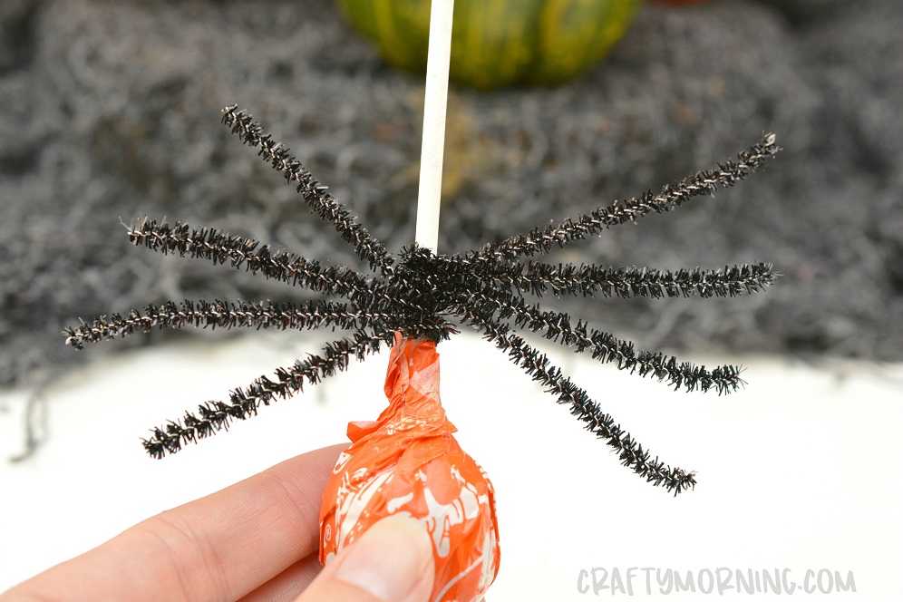 the body of the spider on the lollipop stick.