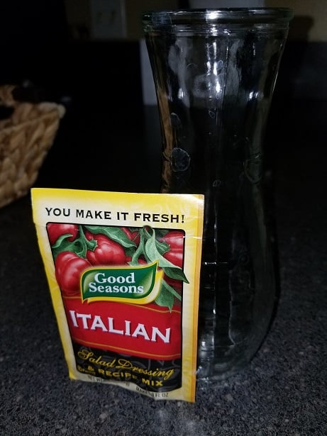 - Mix up the italian dressing seasoning with olive oil (according to the packet) and pour over.