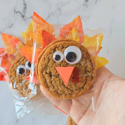 These make adorable place settings for Thanksgiving dinner or a cute classroom treat. Just a heads-up: once people see these, they’ll start disappearing fast… because who can say no to an oatmeal creme pie and a turkey face?