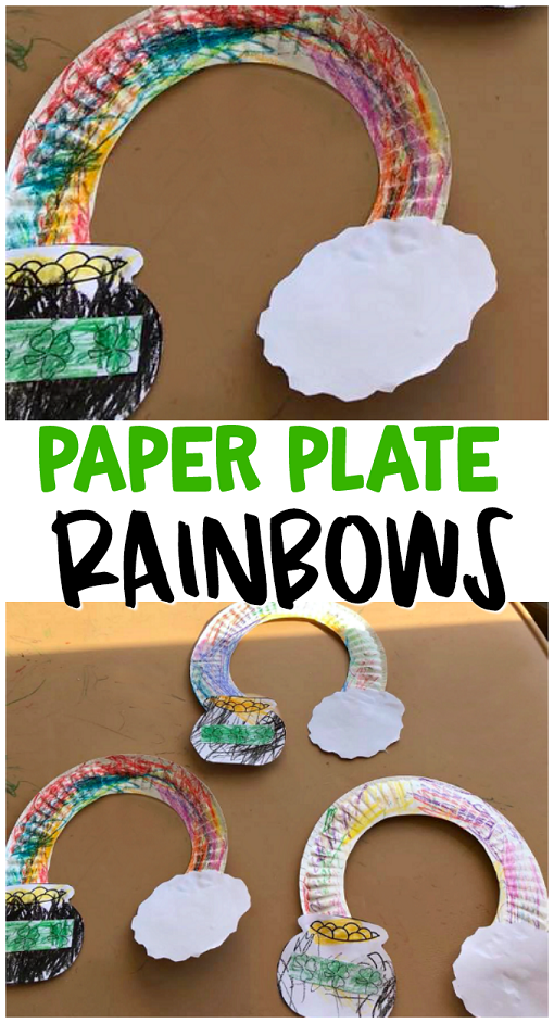 This genius little St. Patrick’s Day craft was made by Jayne Lawrence’s kiddos! Just cut off the bottom of a plate and the inside. Then have the kids color a rainbow with the crayons on the bumpy parts. Cut out a white cloud with paper and print off some small pot of gold to glue on! Adorable.