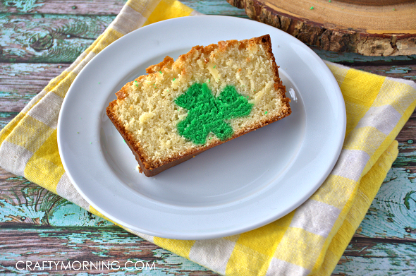 Make this fun peek-a-boo 3 leaf clover pound cake for a St. Patrick’s Day dessert! Kids always love cutting into cakes and finding surprises! You can use any pound cake recipe for this you just double them.