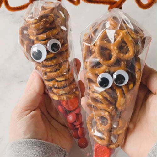 These Piping Bag Reindeer Gifts are perfect for classroom parties, teacher gifts, or as a little “thinking of you” treat for friends and neighbors. They’re festive, fun, and so easy you can whip up a bunch in no time.