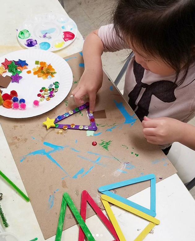 These cute little popsicle stick christmas trees were made by Sjungmay‘s 4 year old student! She glued two regular size popsicle sticks together and a mini one at the bottom. You can then paint them, embellish them and wrap with pipe cleaners/bells!