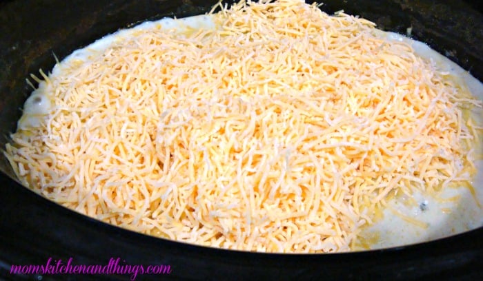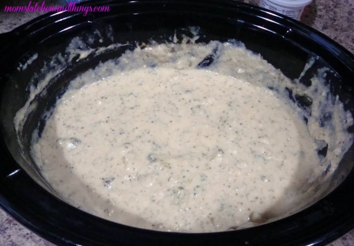 - Once the milk mixture thickens add it to the crock pot, along with the salt, pepper, garlic powder, and cream cheese.
