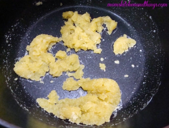 - Melt butter in a large pan over medium heat. Whisk in the flower until it becomes clumpy.