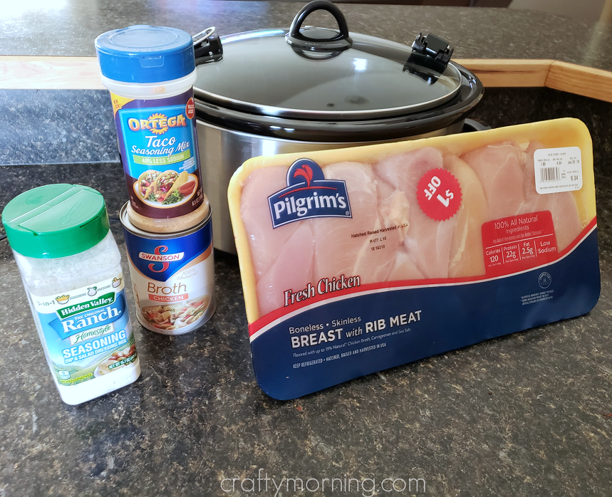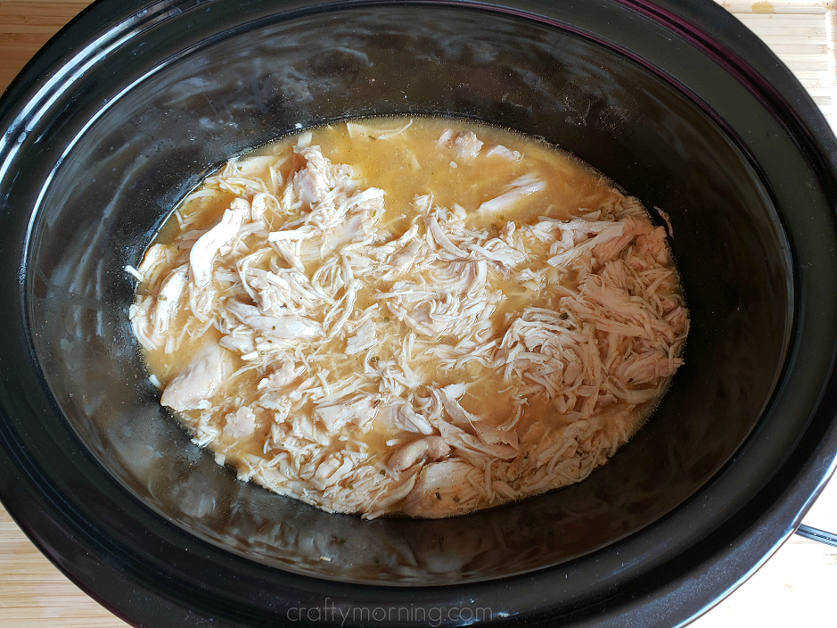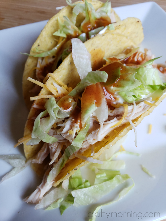 - Shred chicken, mix and serve in tortilla shells with fixin’s!