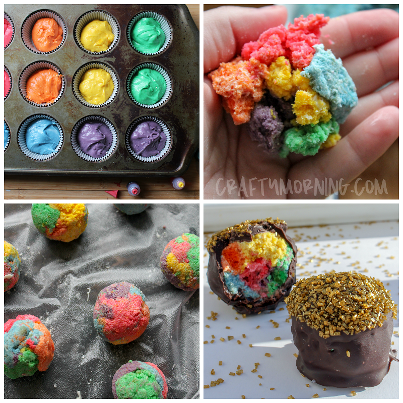 - Once cooled, crumble the cupcakes one color at a time. Â