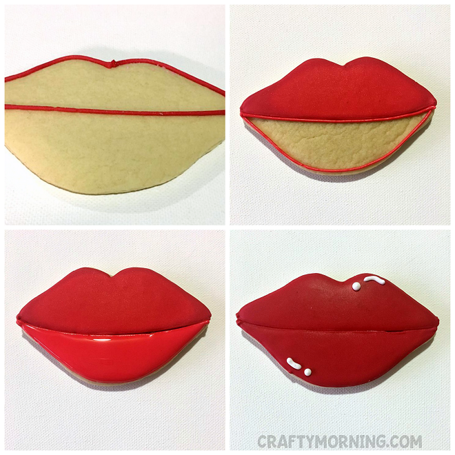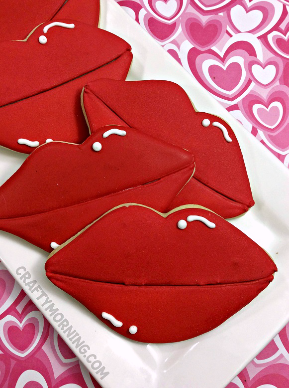 Use any sugar cookie recipe and roll them out flat. Use a lip cookie cutter or a knife to get the right shape. You can print out a photo of lips and use that as a template when cutting with the knife :)