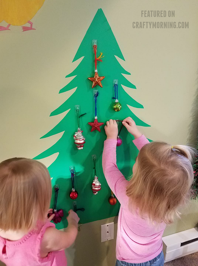 This brilliant toddler proof Christmas tree idea was made by Linda Elser for her daycare kids! All you need is a clear space on the wall.
