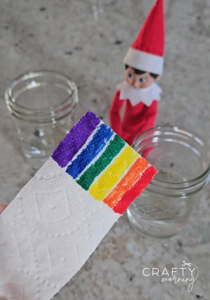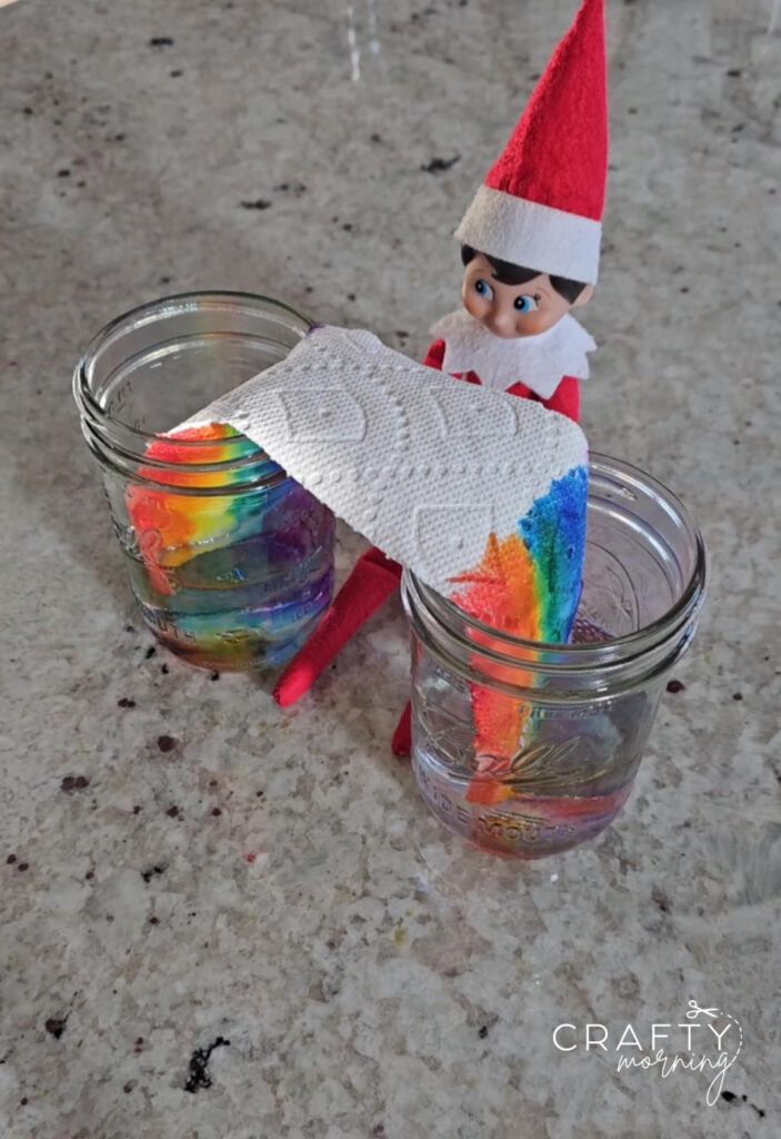 Do this fun walking rainbow experiment with your Elf on the shelf!