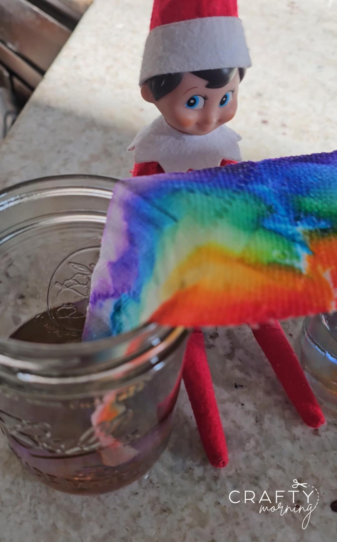 Do this fun walking rainbow experiment with your Elf on the shelf!