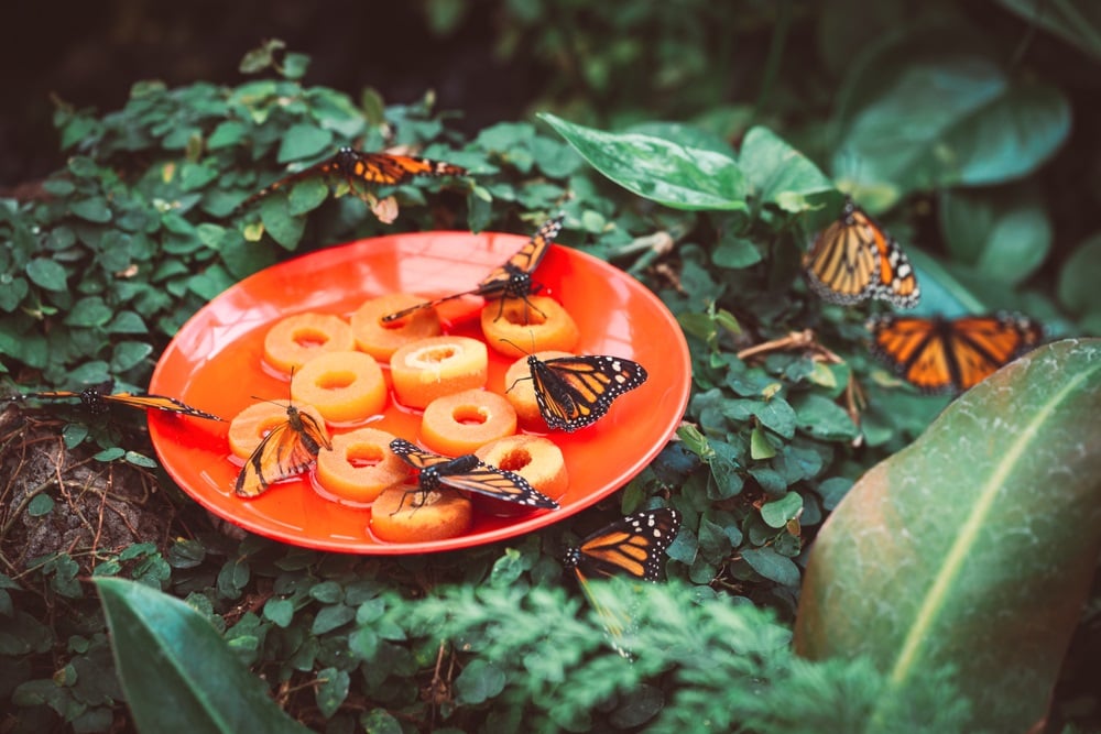 Butterflies feed strictly on milkweed. Making sure to plant milkweed in your yard or garden will help draw them to your yard. The catch is, trying to plant the correct milkweed for your area. You can check this guide for which type(s) to plant in your area.