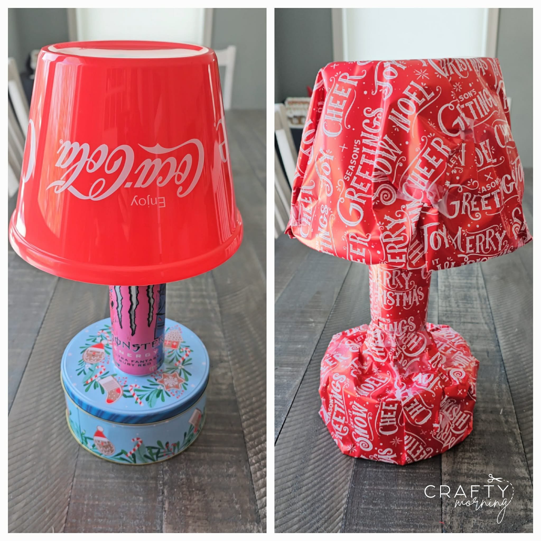 I bought the cookie tin, 2 monster energy drinks, and a plastic coke bucket from Dollar Tree. I filled the cookie tin with lotto tickets, giftcard, and candy! Then I taped them all together and wrapped it.